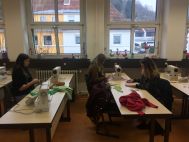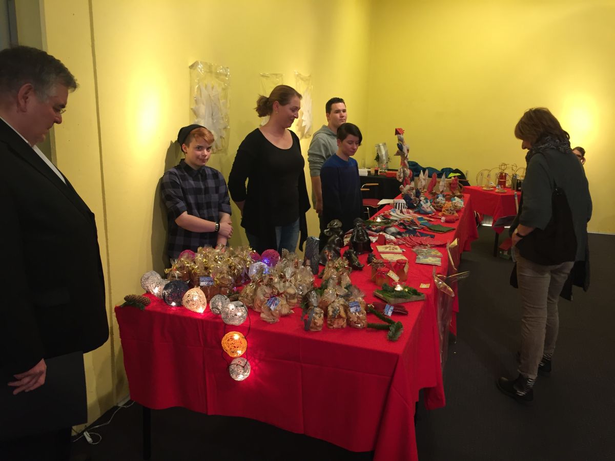 Im Zuge des „bbz in concert – christmas edition`16“ fand am 15.12.2016 bereits ab 17 Uhr im Foyer der Stadthalle ein Weihnachtsbasar der Schule statt. Viele engagierte Schülerinnen und Schüler sowie Lehrerinnen und Lehrer waren im Vorfeld im jeweiligen fachpraktischen Unterricht damit beschäftigt, selbstgemachte Produkte für diesen Abend herzustellen: Einige backten im Vorfeld Plätzchen, kochten Marmelade oder nähten Weihnachtsanhänger, die an diesem Abend verkauft wurden; andere präsentierten und verkauften Teelichthalter, Schneeschaufeln für Kinder oder kleine Vogelhäuschen. Zudem wurden Kunstkarten angeboten und die Besucher hatten die Möglichkeit, den Kunstkalender 2017 zu erwerben. Daneben konnte man sich bei Glühwein und Waffeln die Wartezeit auf das im Anschluss an den Basar stattfindende Konzert etwas versüßen. Vielen Dank an dieser Stelle an alle engagierten Helfer, die zum Gelingen des Weihnachtsbasars beigetragen haben. |
