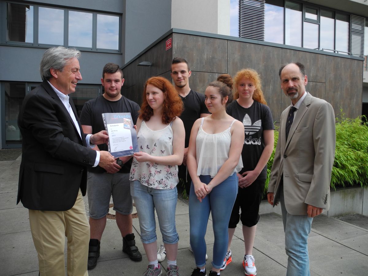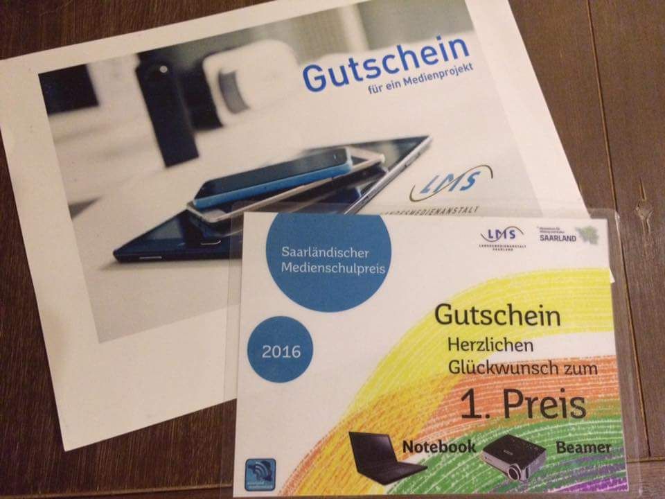 Im Rahmen des nationalen IT-Gipfels fand am 16.11.2016 die Begleitveranstaltung "Digitale Bildung für alle! Digitales Lehren und Lernen entlang der lebenslangen Bildungskette" an der Universität des Saarlandes statt. Aus diesem Anlass schrieb das Ministerium für Bildung und Kultur den Saarländischen Medienschulpreis aus. Dieser honoriert Schulen, die sich in hervorragender Weise für Medienkompetenz und Medienbildung stark machen. Das BBZ Merzig war an dieser Veranstaltung durch Schülerinnen und Schüler des Seminarfachs Medien des Beruflichen Oberstufengymnasiums 12 mit ihrer Lehrerin Sabrina Schmitt vertreten. In der Kategorie „Berufliche Schulen“ konnte der Kurs mit seinem Konzept für das Seminarfach „Medien“ den 1. Platz und damit ein Notebook und einen Beamer sichern. Herzlichen Glückwunsch! |