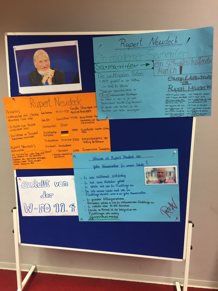 Es ist so weit: Die Vorschläge zur Erweiterung des Namensprojekts stehen fest. Die Klassen bzw. Kurse, die sich daran beteiligt haben, eine Persönlichkeit für die Erweiterung des Schulnamens vorzuschlagen, sind zu einem Ergebnis gekommen und präsentieren seit Montag, 12.12.2016, ihre Vorschläge in der Pausenhalle am Standort Waldstraße und im großen Pausenraum am Standort Von-Boch-Straße. Es gibt vier Vorschläge: Rupert Neudeck, Wilhelm von Humboldt, Georg Christoph Lichtenberg und Oswald von Nell-Breuning. Im Februar soll es dann zu der Abstimmung über die Namensvorschläge kommen. Diese geheime Abstimmung soll über die Klassenlehrer in den Klassen erfolgen (Wahlzettel und Listen hierzu werden erarbeitet). Innerhalb der einzelnen Klassen entscheidet die Mehrheit darüber, für welchen Namen die jeweilige Klasse stimmt, sodass der präferierte Name durch die Klassenlehrer weitergegeben wird. Die Mitglieder des Kollegiums können ihre Stimme gesondert an den dafür vorgesehenen Wahlboxen im Lehrerzimmer abgeben. Man darf gespannt sein, welchen erweiterten Namen das BBZ Merzig zukünftig tragen wird. |