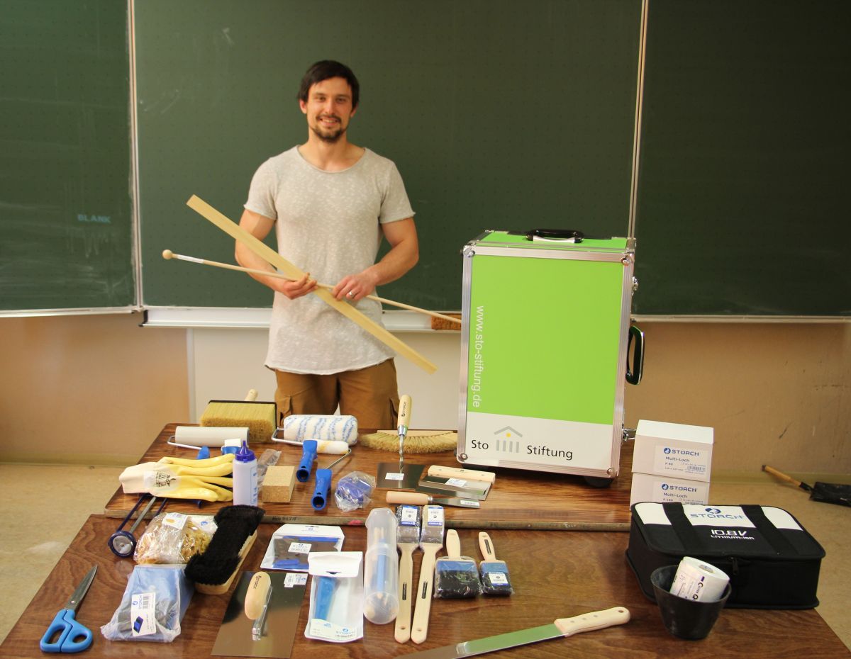 Die Sto-Stiftung fördert seit 2012 den talentierten und fleißigen Maler- und Lackierernachwuchs. In diesen fünf Jahren hat die Malerabteilung vom BBZ Merzig der Stiftung Schüler aus der Oberstufe gemeldet, die bislang alle ins Förderprogramm aufgenommen wurden. „The winner und der neue Besitzer des begehrten Azubi-Werkzeugkoffers des Herstellers Storch ist dieses Schuljahr Pascal Schäfer, der beim Deko-Center in Noswendel seine Ausbildung zum Maler und Lackierer absolviert“, so Edgar Hoff, der schon seit Beginn das Projekt am BBZ Merzig aktiv und erfolgreich betreut. Im Rahmen des Förderprogramms „Du hast es drauf - zeig's uns!“ erhalten deutschlandweit nur 100 ausgewählte Stipendiaten nicht nur den hervorragend ausgestatteten Koffer mit Qualitätswerkzeug, sondern darüber hinaus ein Bücherpaket mit anspruchsvoller Fachliteratur. „Mit diesem Rüstzeug an die Hand hat Pascal eine gute Chance bei der Gesellenprüfung im Sommer theoretisch und praktisch gut abzuschneiden“, so Hoff weiter. Anwesend bei der kleinen Feier waren der stellvertretende Schulleiter Thorsten Klein sowie Kollegen der Malerabteilung, die allesamt Pascal bei der Prüfung die Daumen drücken werden. Auf die Frage nach seinen weiteren Zielen im Malerbereich sagte Pascal: „Zunächst einmal werde ich noch ein paar Jahre bei Deko Thome in Noswendel mein Wissen und mein praktisches Können erweitern. Dann möchte ich auf die Meisterschule gehen.“ |