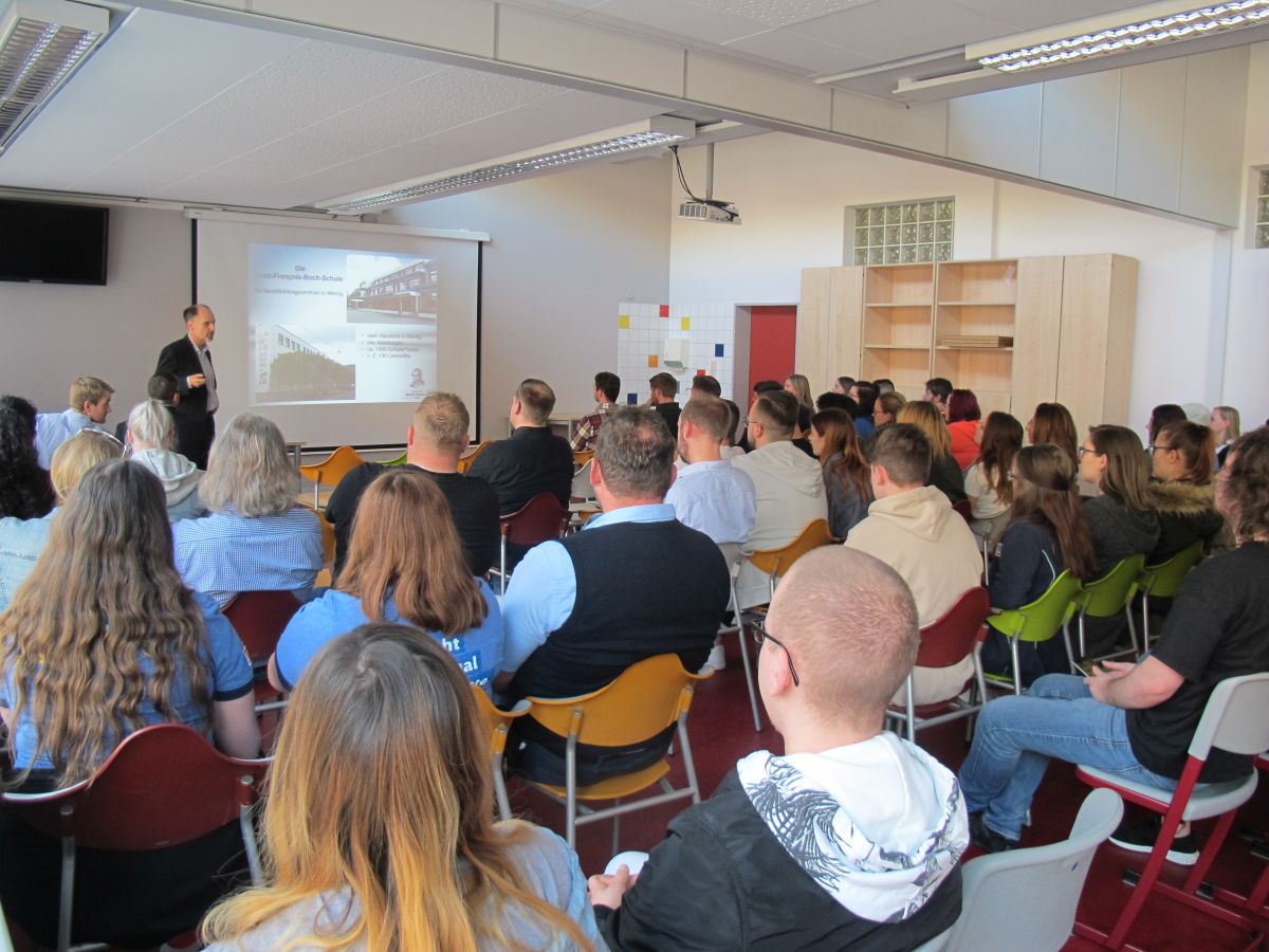 Am 19.06.2017 konnten sich über 50 Schüler der Klassenstufe 12 des Beruflichen Oberstufengymnasiums der Fachbereiche Gesundheit und Soziales sowie Wirtschaft während eines Informationstages am BBZ über Studienmöglichkeiten im Saarland und in Trier informieren. Vor allem ging es dabei um die unterschiedlichen Hochschulformen und Arten von Studiengängen, die den Schülern nach dem Abschluss offenstehen. Organisiert wurde der Tag vom BBZ Merzig in Kooperation mit dem Kommunalen Bildungsmanagement des Landkreises Merzig-Wadern. Am Montagvormittag stellten Referenten der Universität Trier, der htw saar – Hochschule für Technik und Wirtschaft des Saarlandes, der Universität des Saarlandes, der ASW Berufsakademie Saarland sowie der Universität Trier, Bereich Pflegewissenschaften die unterschiedlichen Möglichkeiten und Voraussetzungen für ihre Studienangebote vor. Die Veranstaltung zeigte den baldigen Absolventen, dass es auch regional Möglichkeiten für sie gibt, ein Studium in dualer Form aufzunehmen und dass es durchaus attraktive Beschäftigungsmöglichkeiten für Akademiker im Landkreis Merzig-Wadern gibt. Aus diesem Grund nahmen auch die Holzhauer KG und die Gesundheits- und Krankenpflegeschule der Klinikum Merzig gGmbH teil und stellten ihre Ausbildungsberufe und dualen Studiengänge vor. Zusätzlich dazu kamen Auszubildende und Studenten mit zum Infotag ins BBZ, die aus ihrer Sicht das Unternehmen/ die Hochschule, die Ausbildungsberufe und Studiengänge vorstellten. Darüber hinaus gaben sie Auskunft darüber, wie sie den Studienalltag meistern, wie man das Studium finanzieren kann und gingen auf individuelle Fragen der Teilnehmer ein. Neben den Vorträgen erhielten die Schüler Infomaterialien sowie Informationen zu vertiefenden Orientierungsveranstaltungen vor Ort in den Hochschulen und Unternehmen. Natürlich wurden auch alle individuellen Fragen beantwortet. Die Schüler waren sehr interessiert und hatten viele Fragen zu den unterschiedlichen Angeboten, wie zum Beispiel: Wie kann ich herausfinden, welches Studium zu mir passt? Kann ich neben dem Studium noch arbeiten? Welche Unterstützungsmöglichkeiten gibt es im Rahmen des Studiums? Wie gut sind die Chancen, nach einem dualen Studium übernommen zu werden? Viele der Schüler hatten bereits konkrete Vorstellungen zu einer möglichen Ausbildung oder einem Studium. Auch wollen sich einige Schüler im Nachgang mit den Referenten in Kontakt setzen und an weiterführenden Informationsveranstaltungen der Hochschulen teilnehmen. |